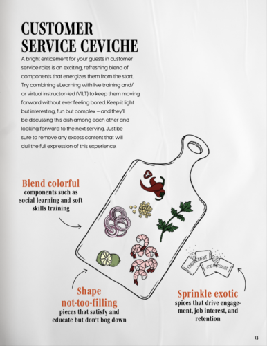 An illustration from the “Customer Service Ceviche” section of the Litmos L&D eBook, “Joy of Learning: Recipes & Ideas to Nourish Learners.”